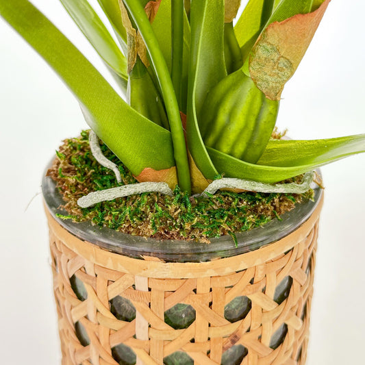 Two Mini Orchids in Small Cane Vase