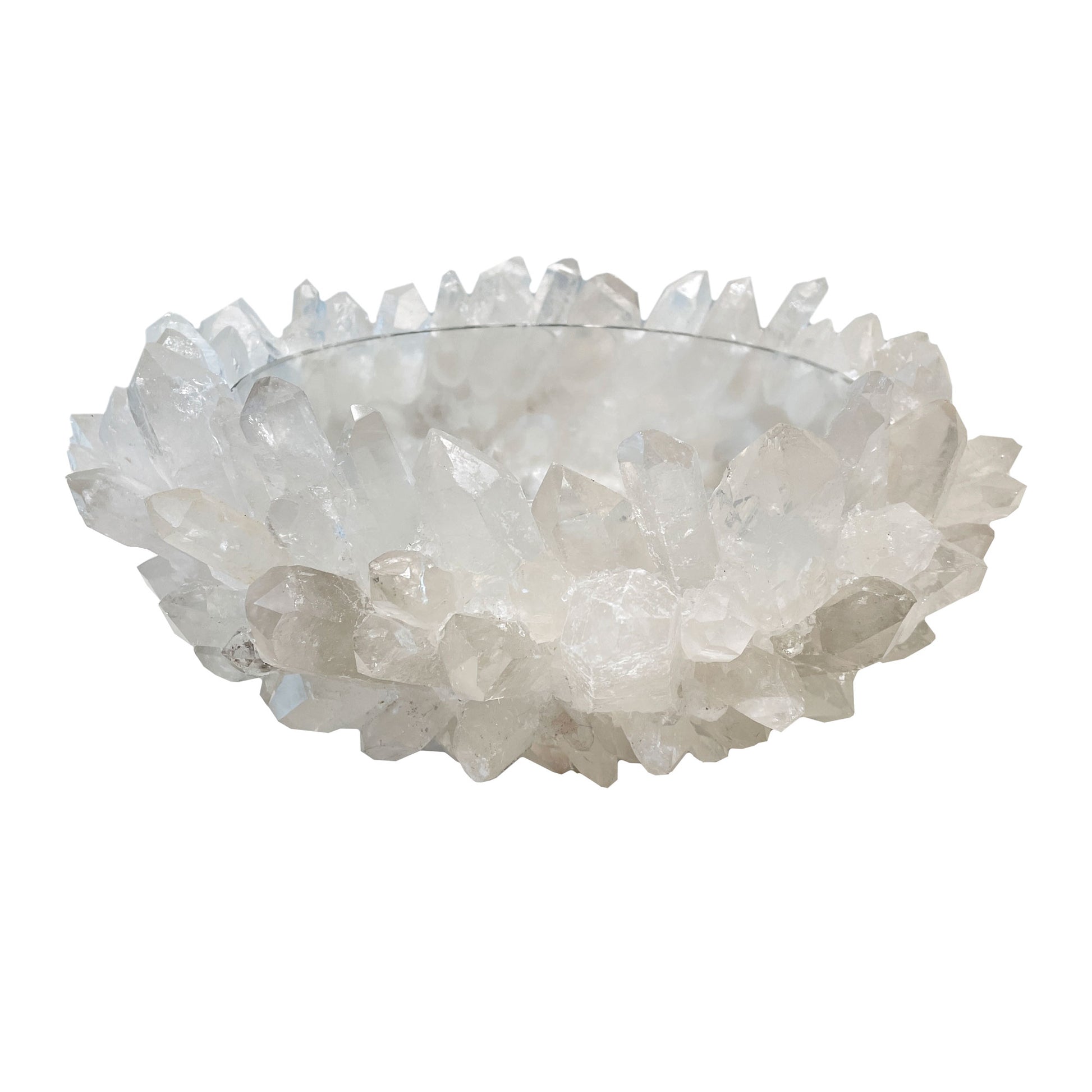 Quartz crystal is a beautiful clear natural crystal formed over millions of years. Our dazzling rock crystal bowls are handmade using hundreds of these sparkly crystals. These pieces are absolute show stoppers, an impressive way to welcome guests on an entry foyer table, a spectacular piece on a cocktail table, or a wonderful conversation piece on a bar! No matter where it is, this bowl will have your guests ooh-ing and ahh-ing!