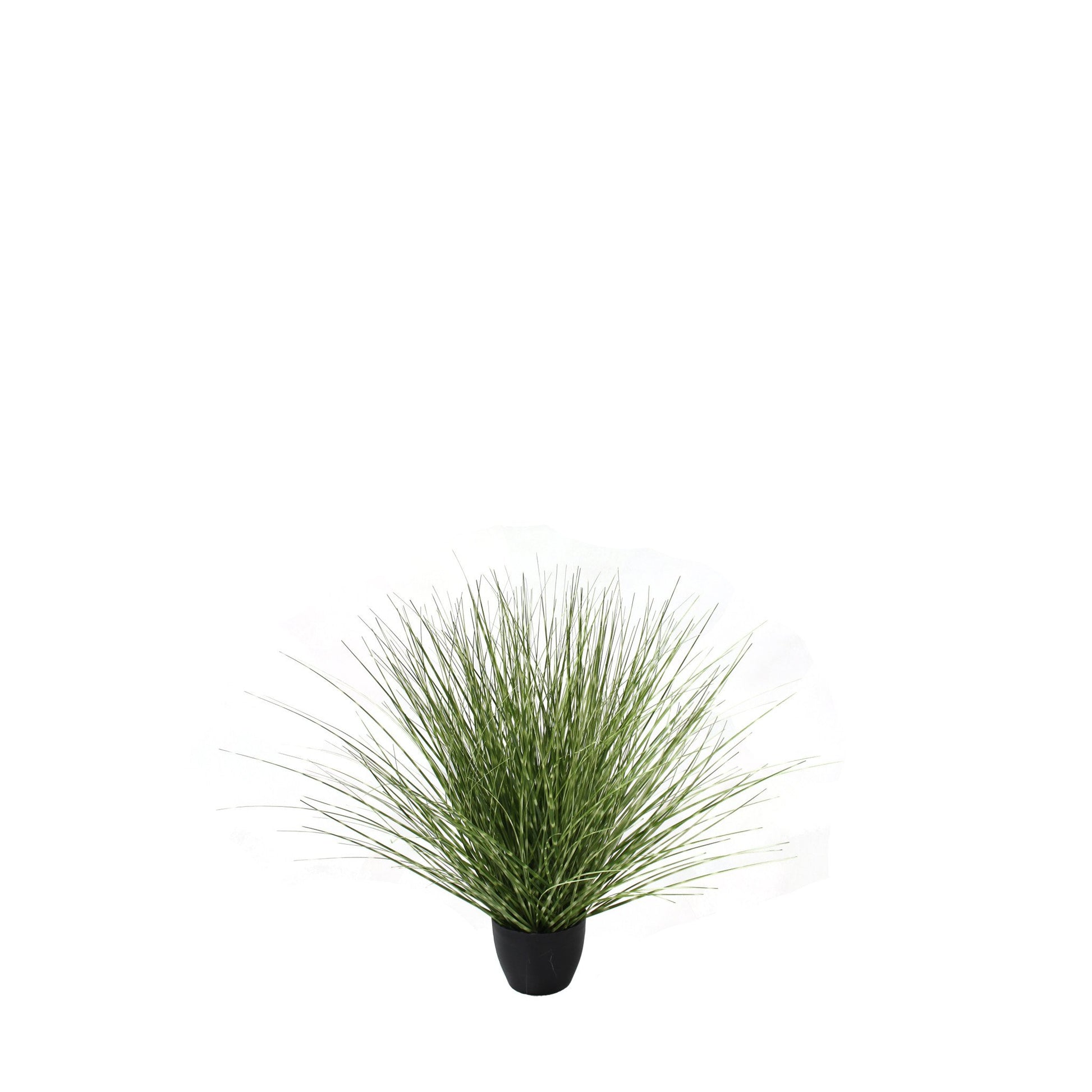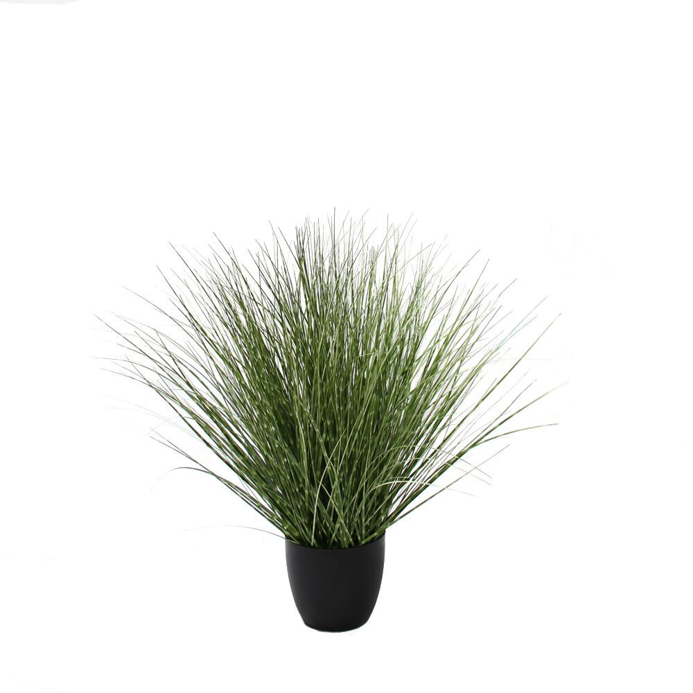 This wide river grass is available in 3 sizes and is fixed into a black weighted pot. Our river grass features thin dark green blades highlighted with lighter green spots. This gorgeous variegated pattern brings texture without becoming a focal point.