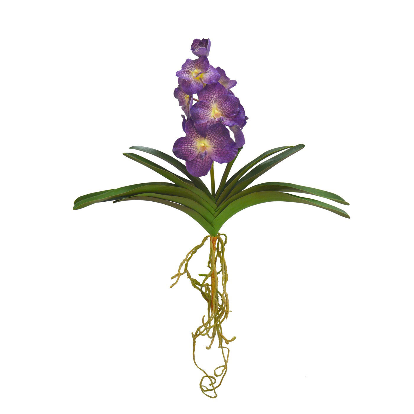 These incredible vanda orchid plants have gorgeous realistic blooms on a single stems, and lifelike leaves and roots.